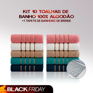 Kit 10 Toalhas De banho 100% Algodão Premium - Compre 5 leve 10 + Tapete de Banheiro Antiderrapante de Brinde | Oferta Especial de Black Friday